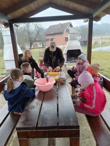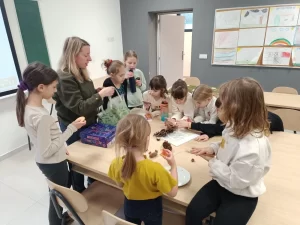 Daljnji planirani program su nastavili u Ekološkom centru „Vrata Zrinske gore“ s višegodišnjom suradnicom Centra Martinom Mladenović iz Kulturno-povijesnog centra Sisačko-moslavačke županije i njenim uvijek zanimljivim i poučnim, ali i veselim biljnim radionicama. Ekipa je radila cvjetne pločice s otiscima raznog bilja.