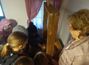 Seoski život nekada, kako je izgledao, u kakvim se kućama živjelo, što se i kako radilo na selu, čime su se sve ljudi koristili u svakodnevnom životu polaznici su saznali četvrti dan boravka u kampu. Što je to žrvanj (starinski ručni mlin na kamen koji melje sve vrste žitarica), kako su izgledali kreveti i posteljina nekada na selu, što je to vez na platnu i kako se veze, tek su dio onoga što su mogli iskusiti i sami uz pomoć i poduku gospođe Veronike Filipec u njenoj kući u Hrvatskom Čuntiću, a zatim je održana radionica veza na platnu u Ekološkom centru. Cvijeće, duga, nebo bili su tematski elementi koje su polaznici vezli na platnu, a njihovi radovi pokazali su koliko su kreativni i znatiželjni bili u upijanju novih znanja i vještina. Kristina Ivković iz Hrvatskih šuma održala je radionicu izrade edukativnog plakata uz ponavljanje gradiva gdje su se polaznici pokazali poput pravih malih enciklopedija, a zatim su imali radionicu izrade kućica za ptice. Prekrasni radovi su nastali na obje radionice, a najvažnije od svega je što su se polaznici vraćali kući željno iščekujući novi dan druženja!