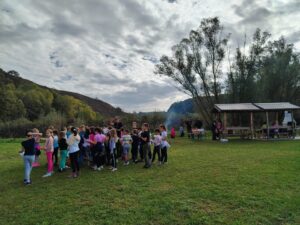 Učenici trećih razreda OŠ Viktorovac sa svojim učiteljicama i pedagoginjom stigli su nam u rano jutro 19. studenog 2023. godine kod izvora Bartolovac u Hrastovici odakle smo se zaputili u hrastovačku šumu u berbu kestena. Punih vrećica i torbi potrpali smo se u autobus i zaputili u Ekološki centar „Vrata Zrinske gore“ gdje smo stigli ogladnjeli od svježeg i čistog šumskog zraka i fizičke aktivnosti. Zato smo naložili logorsku vatru i pekli kobasice i hrenovke, a potom se zasladili prefinim pečenim kestenima. A kad smo se dobro najeli, onda smo opet imali dovoljno energije za odlazak do kule u Čuntiću. Orijentacija je uvijek bitna u prirodi pa smo prije polaska dogovorili put, krenuli pjevajući vojničkim korakom, stigli do izvora Marića točak gdje smo se okrijepili, a onda se okušali u traženju skrivenog blaga kod kule. Bilo je malo teže, ali prateći znakove poput pravih istraživača, ipak smo uspjeli, blago pronašli i pravedno ga podijelili. Naša avantura tako je prišla kraju, ali veselimo se ponovnim druženjima!